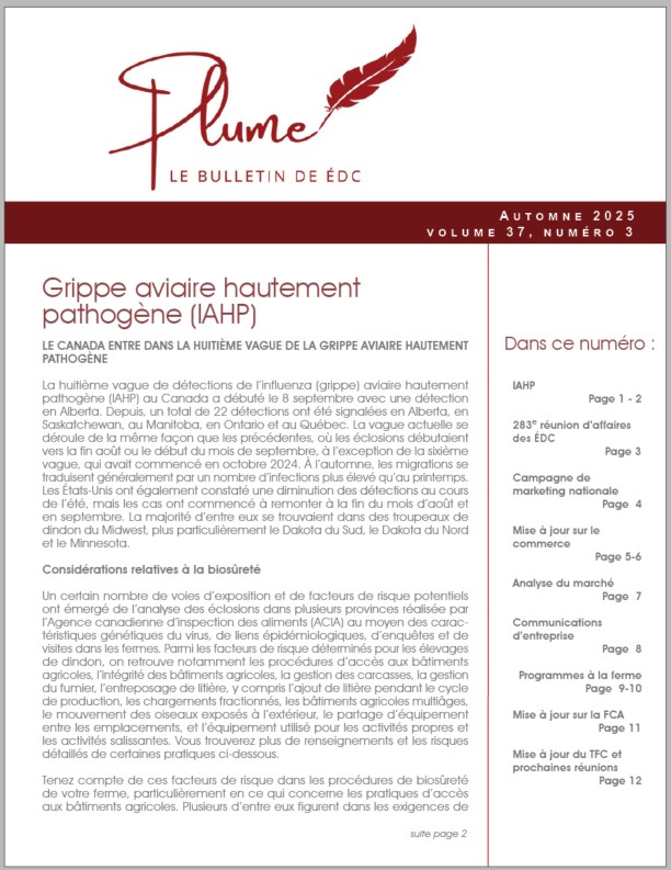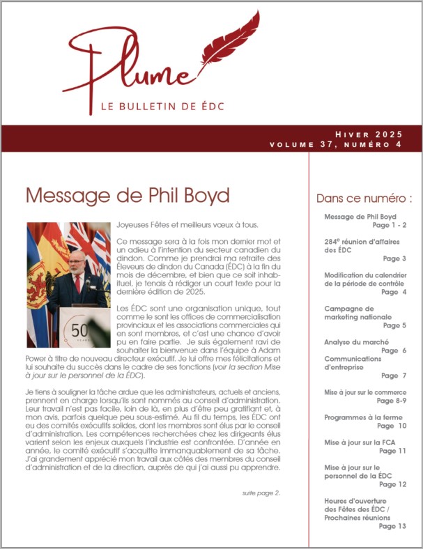 Tenez-vous au courant de ce qui se passe avec les TFC et l'industrie canadienne du dindon avec le bulletin TFC Plume.